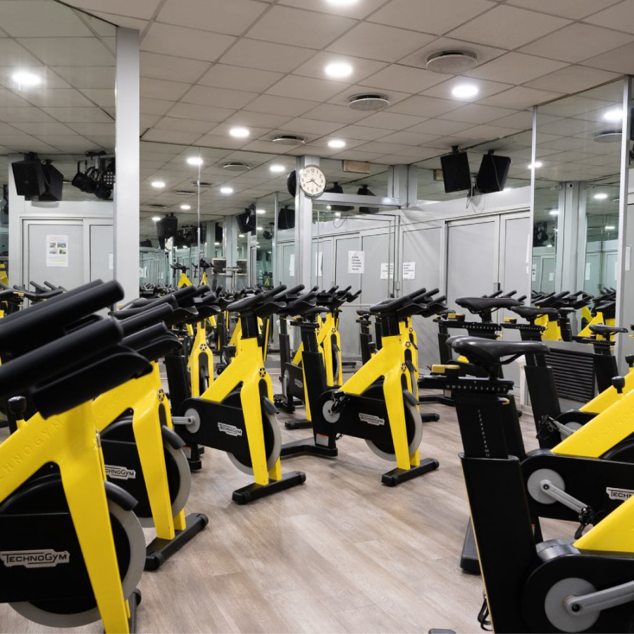 Un ambiente carico di energia e motivazione, perfetto per sessioni di spinning coinvolgenti e dinamiche, pensate per superare ogni limite.